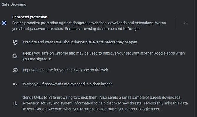 1. Chrome > Settings > Privacy and security section > Security > Under Safe Browsing section > turn on Enhanced protection. How to use Safe Browsing.