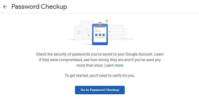 4. Login to Google Account Password Manager with your Google account & select Go to Password Checkup and change passwords for any sites that use same password to a unique for each and save it in Chrome synched with Google account. How to use Password Checkup on online Google Password Manager.