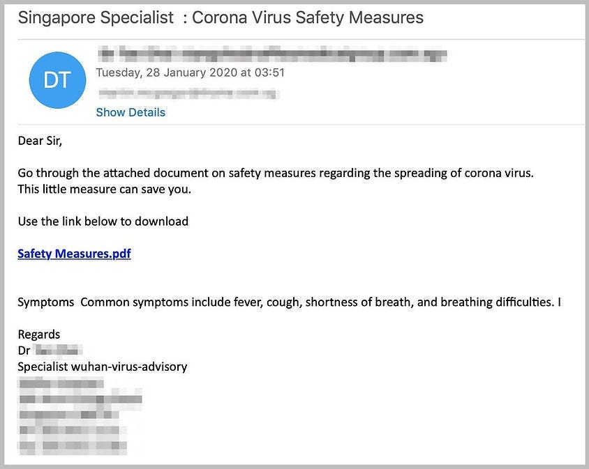 Example of Corona Virus Email Scam (Source: Mimecast)